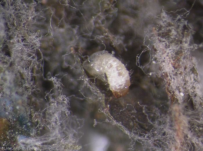 • Dejan el "puro" a mediados de julio y se hunden en el suelo donde pupan. Después de 10 a 21 días, las ninfas lugar dan a adultos que permanecerán en sus compartimentos en diapausa hasta la primavera siguiente.