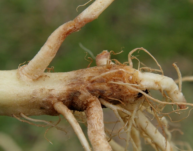 Las plantas afectadas a menudo están poco desarrolladas y son cloróticas. A veces se marchitan en los días calurosos