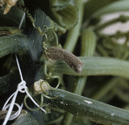 Botrytis cinerea puede atacar prácticamente todos los órganos aéreos de muchas cucurbitáceas: hojas, tallos y especialmente frutos.