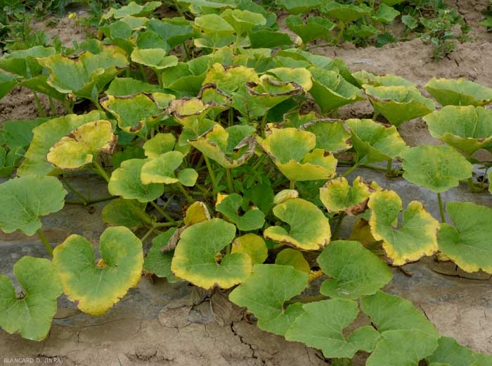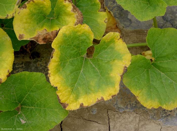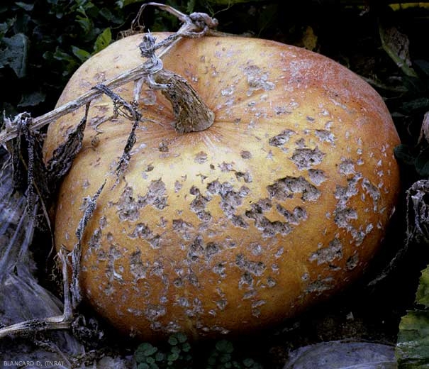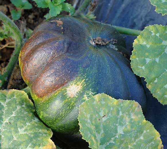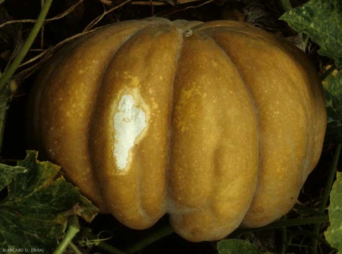 Casi todos los frutos de las cucurbitáceas pueden verse afectados, en particular cuando el follaje que las protege ha sido más o menos destruido por diversas causas: ataque de plagas aéreas, marchitez del follaje vinculado a una plaga del suelo ... Nótese que estas lesiones superficiales Puede ser invadido por varios hongos saprofitos secundarios que causan pudriciones.