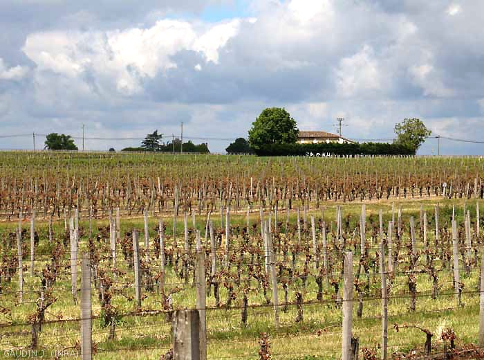 - Desfavorablemente: la práctica de la poda tardía que desplaza la brotación, arrancando las yemas del suelo, métodos de poda que retrasan la brotación, la presencia de un seto río arriba, la elección de parcelas poco favorables a las heladas (evitando en la medida de lo posible bajíos, las cuencas (figuras 11 y 12) y la proximidad de un bosque).