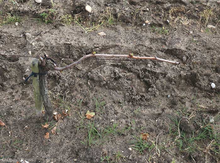 - Las heladas invernales son un factor limitante para el cultivo de la vid. Así, dependiendo de la región, es recomendable cultivar variedades de uva más o menos resistentes al frío. Tenga en cuenta que si la bajada de temperatura es paulatina, los valores negativos están muy bien soportados por la cepa que poco a poco entra en reposo vegetativo. Sin embargo, un período demasiado prolongado de frío intenso puede provocar la formación de congelación , hendiduras radiales que penetran más o menos profundamente en el tronco en la base y en la parte superior de las cepas. Las situaciones más temidas son los inviernos suaves que permiten una recuperación prematura de las cepas que empiezan a brotar. Solo se necesita un regreso repentino del frío para causar un daño significativo. Luego observamos la destrucción de los cogollos que se comban con facilidad. El tejido congelado muestra un tinte de oscuro a marrón y finalmente se necrosa. Es posible que no se desarrollen muchas yemas, en cuyo caso aparecerán yemas secundarias y terciarias. Al levantar la corteza de las ramas congeladas, se observa una coloración negruzca a marrón en el cambium y la estopa que ha sido destruida. La sección de los brazos y ramas muestra una coloración roja de la estopa. Con frecuencia, el cordón de soldadura del injerto se ve afectado, mientras que las raíces se dañan ocasionalmente, siendo las más pequeñas las más sensibles.