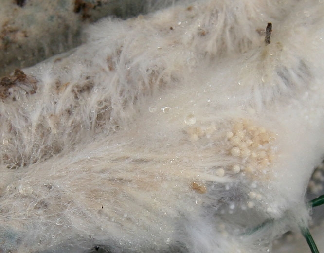 En el tejido dañado, forma rápidamente micelio y esclerocios. Estos pueden germinar rápidamente porque no necesitan una fase latente. Sin embargo, pueden permanecer en el suelo durante varios años sin germinar.