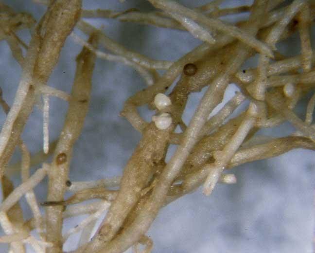 - des femelles (de couleur blanche) et/ou des kystes (femelles mortes de couleur brune) à la surface des racines : dans ce cas il est possible de valider la présence de nématodes des genres Heterodera et/ou Globodera.