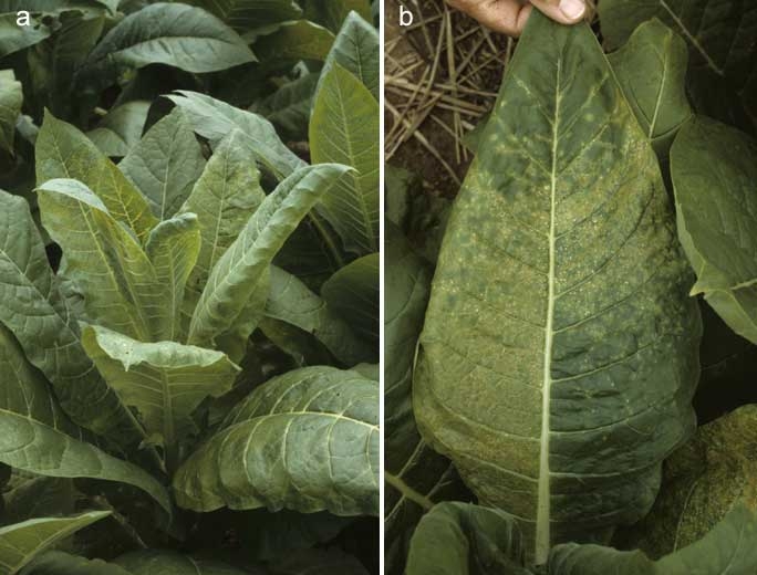 - un autre Potyvirus, le Chilli veinal mottle virus (ChiVMV) sévirait sur tabac en Thaïlande, parfois en complexe avec le CMV, et provoquerait des symptômes sur cet hôte assez comparables à ceux engendrés par le PVY ;
