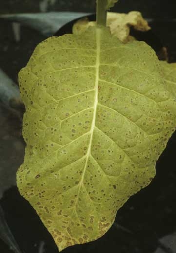 Il convient d'être particulièrement vigilant lorsqu'on est confronté à des taches foliaires sur tabac. Il faut toujours garder à l'esprit que des phytotoxicités (figure 1), quelques carences minérales (figure 2) engendrent parfois des symptômes qui rappellent certaines taches que nous avons décrites dans plusieurs autres rubiques. Lorsque vous aurez le moindre doute, nous vous conseillons de faire compléter votre diagnostic par un laboratoire spécialisé.