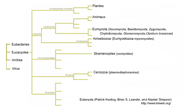 Toutefois, pour plus de facilité pour l'utilisation de cette base de données ainsi que l'organisation des informations concernant les espèces décrites (hôtes, maladies, ravageurs, adventices), nous avons choisi un classement inspiré du projet "Tree of life" consultable sur Tolweb.org, qui semble faire consensus et permettant d'y replacer les phyla ou classes (puis ordre, genre, espèce) plus traditionnels. Si vous souhaitez plus d'informations sur ce qu'est la systématique, nous vous conseillons de consulter l'article sur la classification des insectes qui est en fait valable pour tous les organismes vivants.