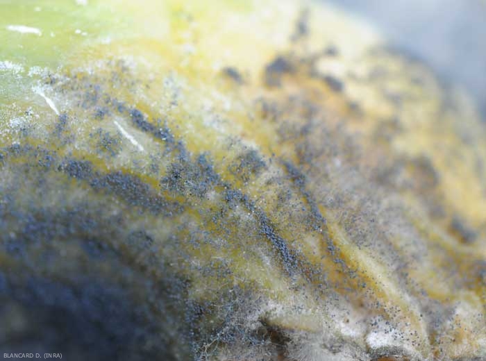 Vous trouverez dans Di@gnoPlant des informations sur les dégâts de Rhizopus stolonifer sur fruits de tomate, ou Choanephora cucurbitarum sur melon.