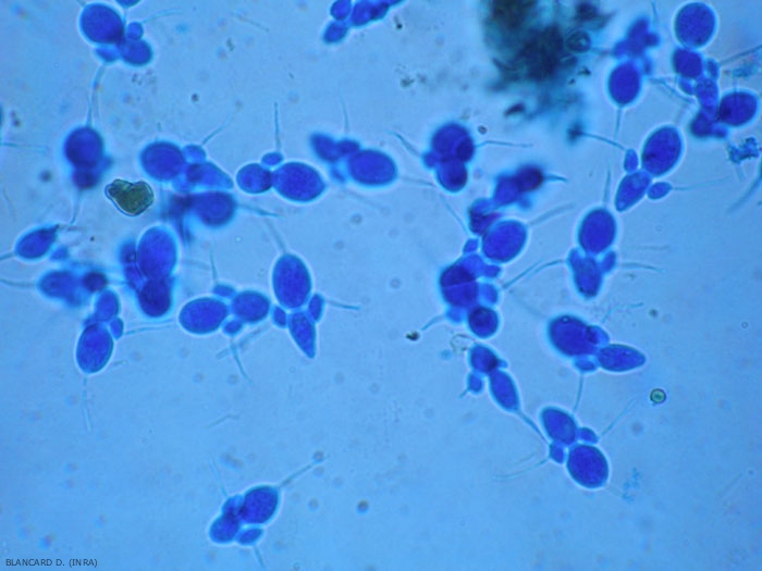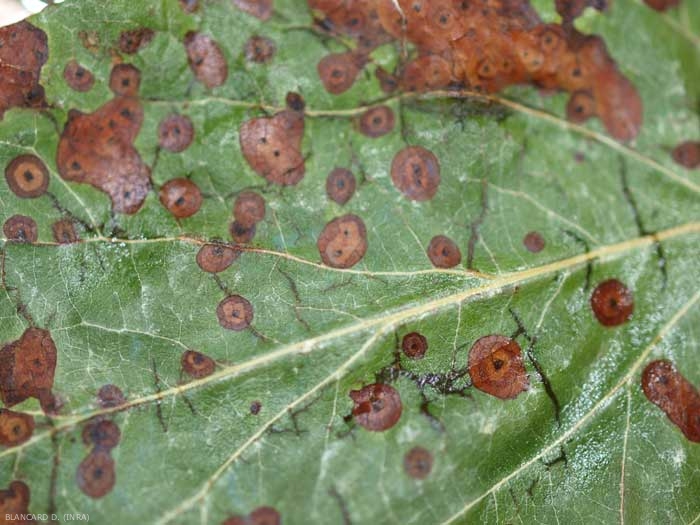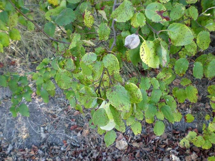 L'entomosporiose est provoquée par le champignon Diplocarpon mespili (anc. Entomosporium maculatum cv. cydoniae, Ascomycota Leotiomycetes). Ce champignon provoque des petites taches (macules) sur les feuilles et les fruits (figures 5 à 7).