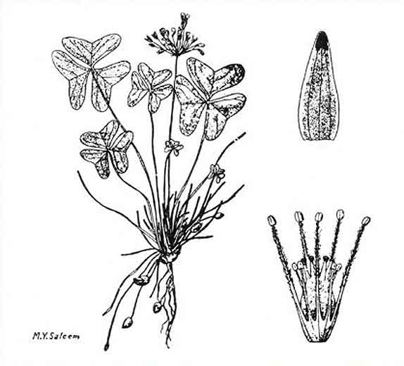 Dans cette famille (wood sorrel family), les plantes herbacées ont des feuilles composées de trois folioles en forme de coeur. Ces feuilles sont riches en acide oxalique et peuvent être responsables d'empoisonnement du bétail. Les fruits sont des capsules à 5 loges avec une projection élastique des graines.