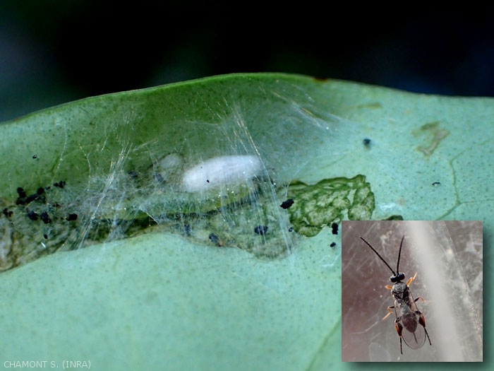 La chrysalide est brune, finement rugueuse ; elle mesure de 12 à 16 mm de long, pour 3 à 4 mm de large (figure 5).