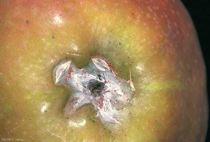 Le papillon pond à la face inférieure des feuilles. Le développement embryonnaire peut excéder 1 mois. La chenille vit en mineuse dans les feuilles. En fin de croissance, la chenille sort de la galerie et tisse un cocon (figure 1) à la surface de la feuille (1ère génération) ou dans les crevasses de l'écorce à la face inférieure des branches, ainsi que dans les cavités pédonculaires et pistillaires des fruits (2ème génération hivernante). La chrysalide est formée au bout de 2 jours, son développement dure 8 jours pour la génération estivale.