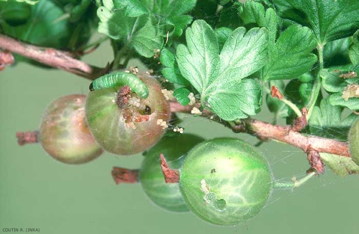 Une seule baie de groseillier épineux (groseillier à maquereau, Ribes uva-crispa) suffit en général à la croissance d'une chenille (figure 3).