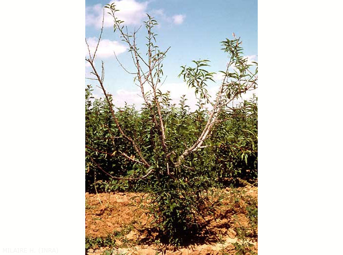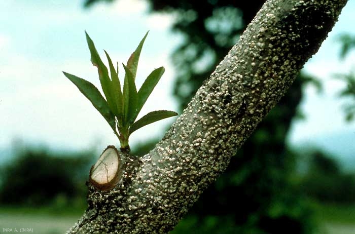 La cochenille envahit le tronc, les branches et les rameaux (figure 2), mais pas les feuilles. L'arbre, couvert de cochenilles, est épuisé et meurt (figure 3).
