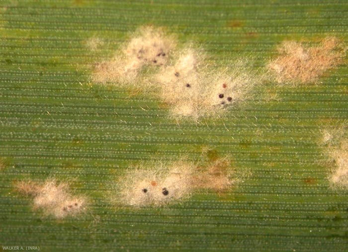 Les conidiophores de B. graminis se forment sur le mycélium. En se divisant, ils produisent les conidies asexuées, transparentes à paroi incolore (figure 3). Ces conidies ont une forme de tonnelet dont la surface est généralement granuleuse. Elles ont des dimensions très variables en fonction de la plante hôte et des conditions qui régissent leur formation (25-30 x 8-10 µm).