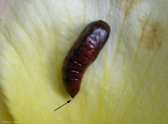 - chrysalide : nymphe des lépidoptères (figure 4). La cuticule nymphale est durcie, souvent colorée, mais laisse apparaître les fourreaux des pattes, des ailes et des antennes du futur adulte. Les chrysalides sont très peu mobiles ; beaucoup sont enfermées dans un cocon.