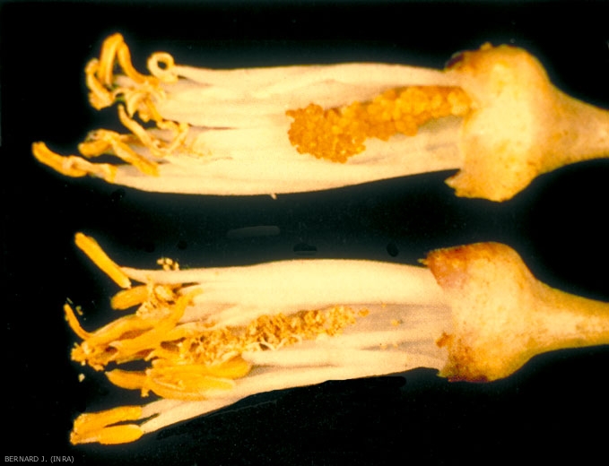 Quelques heures plus tard, la femelle pond 1 à 3 oeufs sur un bouton floral puis change de bouton. La fécondité totale observée est généralement de 60 à 150 oeufs.