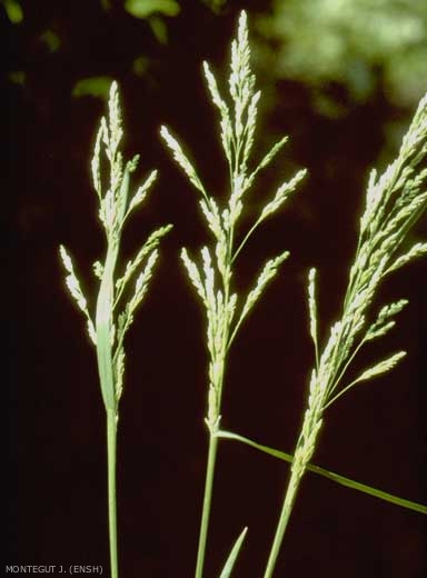 Ligule membraneuse aiguë, limbe non auriculé à la base.