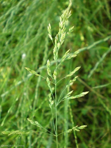 Inflorescence : panicule grande, pyramidale, étalée, à rameaux inférieurs réunis par 4 à 6 en demi-verticilles. Épillets ovales, à 2 à 4 fleurs, un peu velus, laineux à la base. Glumes inégales et trinervées. Glumelles inférieures lancéolées, ciliées dans le bas et sur les bords ;
