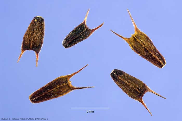 Fruit : akènes noirâtres bordés de soies droites et prolongés par 2 arêtes.