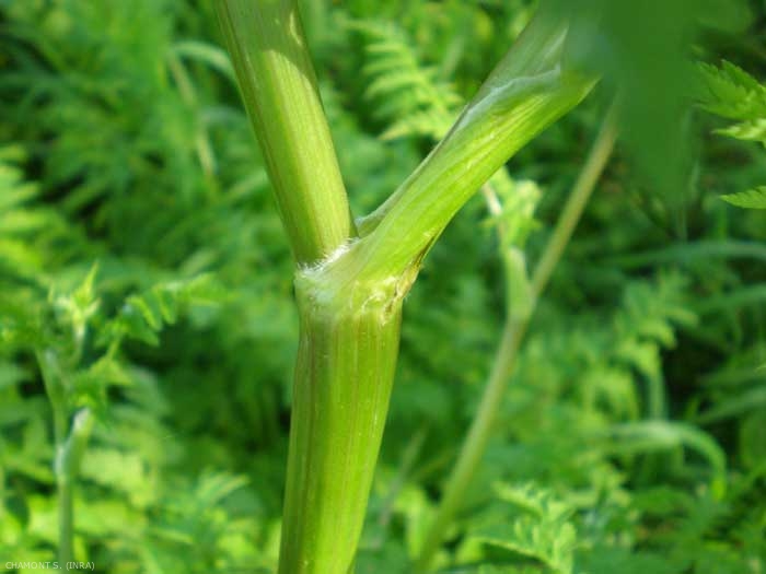 Tige : dressée, creuse, sillonnée, couverte de duvet dans sa partie basse mais glabre dans sa partie supérieure