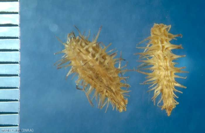 Ornementation : épines droites non en crochet, rougeâtres;