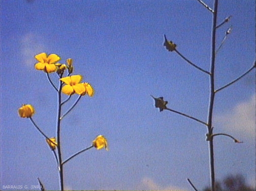 Fruits : silicules subtétragones, renflées, à 4 angles ailés et dentés (10 à 12 mm). Grappe fructifère allongée.