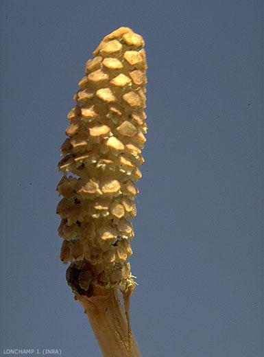 Fructification : épis de 1 à 4 cm, oblongs, roussâtres contenant les sporanges.