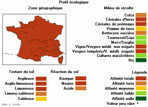 Plante assez commune, cette adventice est présente dans les cultures de tous les pays d'Europe. En France on la trouve sur tout le territoire dans les sols limono-sableux à argileux. Elle colonise les céréales, le colza et la betterave ainsi que les vergers et vignobles.
