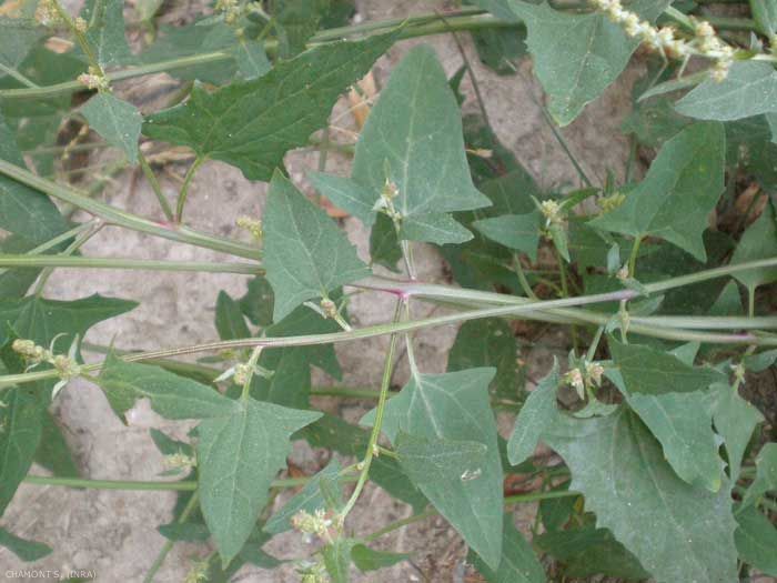 - hastée : feuille +/- triangulaire munie de 2 lobes ou oreillettes comme chez Atriplex prostata (figure 2).