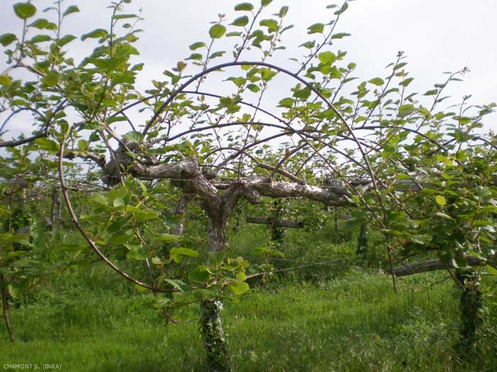 Cette plante est conduite sur tuteur menant à un fil de fer tendu, ce qui lui confère un port en T. Il est conseillé de planter un pied mâle pour 8 ou 10 pieds femelles. La pollinisation se fait par les abeilles. La floraison a lieu en juin et le fruit parvient à maturité en octobre-décembre. Un éclaircissage des fruits est nécessaire.