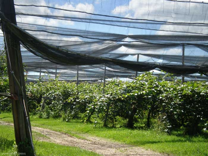 Cette culture est très sensible au manque d'eau ainsi qu'à l'hygrométrie ambiante. Il peut-être placé à mi-ombre et souvent cultivé sous ombrière et aspersion. Elle doit être aussi protégée du vent par des haies. La plante préfère les sols humifères, légers et peu calcaires. En plus de sa sensibilité au gels hivernaux, une protection par aspersion contre les gelées printanières du kiwi lors du débourrement peut-être nécessaire.