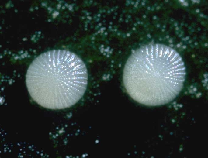 Les oeufs (figure 7-1), transparents, blancs, marron noir, mauves, etc., de diamètre inférieur au millimètre, sont déposés isolément ou par groupes à la surfaces des feuilles ou de divers supports (figure 2). Par la suite, ils éclosent et donnent naissance à des chenilles (figure 7-2) mesurant de 25 à 50 mm en fonction de l'espèce, pourvues de puissantes mandibules qui leur permettent de consommer en permanence les végétaux, notamment les feuilles (figures 3 et 4).