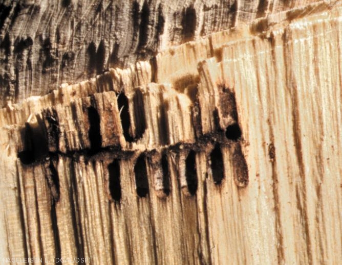 Les troncs de faible diamètre (<15 cm) se trouvent parfois atteints jusqu'au coeur.