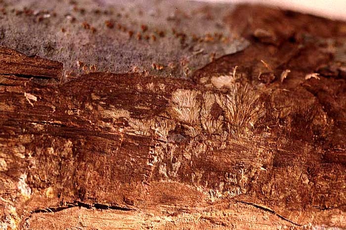 Localisation sur l'hôte : Zones corticales (troncs, branches)