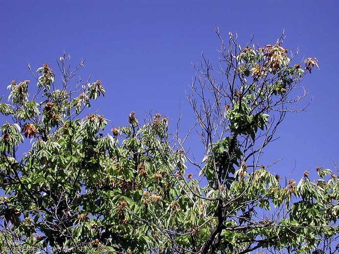 - Au dessus du point d’infection, les rameaux, les branches ou la tige peuvent présenter un feuillage de plus petite taille, un peu moins vert ou entièrement desséché si la circulation de la sève a été interrompue. Ces feuilles sèches ne tombent pas à l'automne