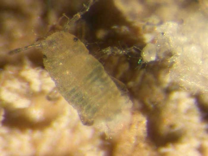 - Puceron de couleur vert-jaune ou vert sombre suivant les stades, dissimulé sous d’abondantes sécrétions cireuses blanchâtres