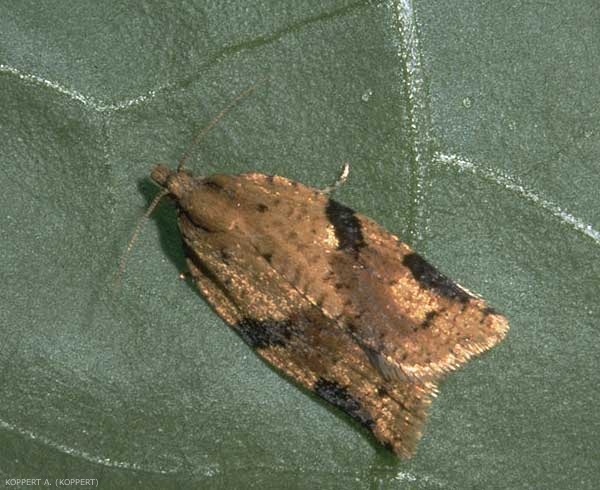 Les adultes (figure 1) ont une bonne aptitude au vol et peuvent pondre dans différents endroits de la culture. Les tordeuses se dispersent d’une serre à l’autre surtout par nuits chaudes, lorsque les ouvrants restent longtemps ouverts. Les tordeuses volent au crépuscule.