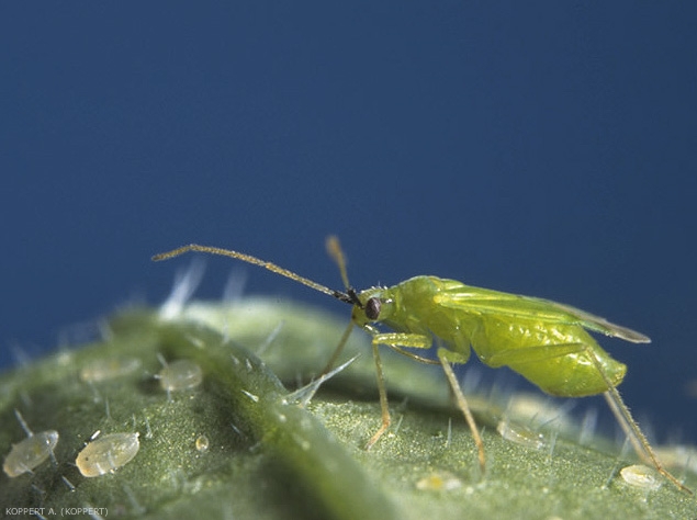 Efficacité   Un adulte de M. pygmaeus peut consommer 30 à 40 oeufs d'aleurodes par jour, 15 à 20 pupariums (figure 3) et 2 à 5 adultes.