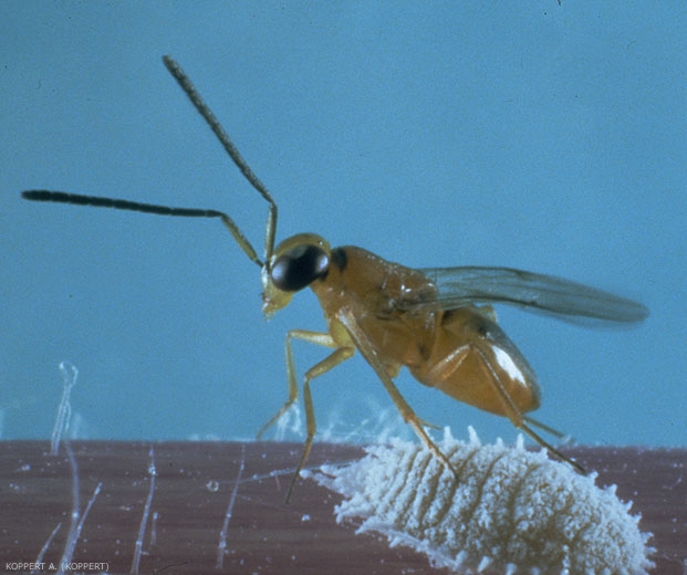 | Stades attaqués | troisième stade larvaire et dans les adultes femelles de cochenilles |