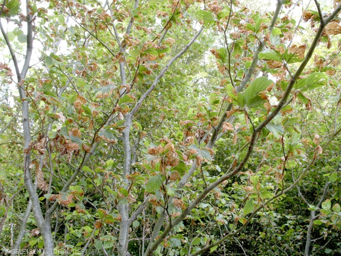 De loin, roussissement du feuillage, qui peut faire penser à dégât de gel tardif.