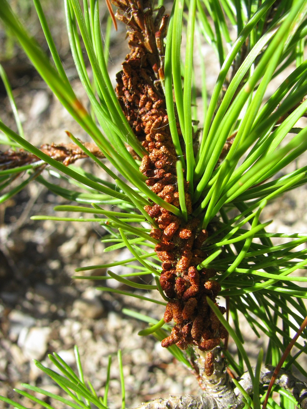 La larve solitaire s'installe à la base du verticille de la pousse de l'année et tisse un fourreau de protection qui se remplit de ses déjections (petits tonnelets vert à brun-noir de 2 à 3 mm de long). Ce fourreau peut s'étendre sur plusieurs centimètres, jusqu'à la base de la pousse de l'année précédente. Elle s'y retire régulièrement. Elle se nourrit des aiguilles (une larve peut consommer jusqu'à 75 aiguilles). Au dernier stade larvaire, elle consomme 14 fois plus d'aiguilles qu'au premier stade. Fin juillet-début août, la larve quitte le plant et pénètre dans le sol (jusqu'à une profondeur de 50 cm en sol meuble) où elle se nymphose et entre en diapause jusqu'au printemps suivant. La fin du développement intervient de mars à juin.