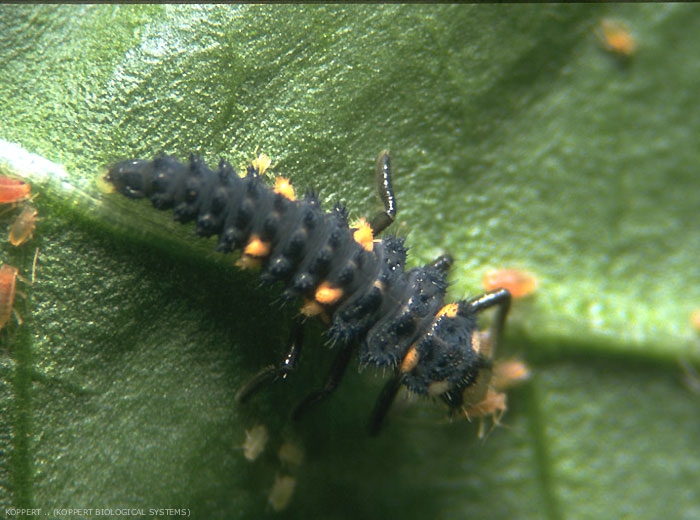 | Efficacité | très forte, surtout en forte densité de proies. Les larves: une centaine à un millier de pucerons par jour ; adulte :cent à deux cents larves |