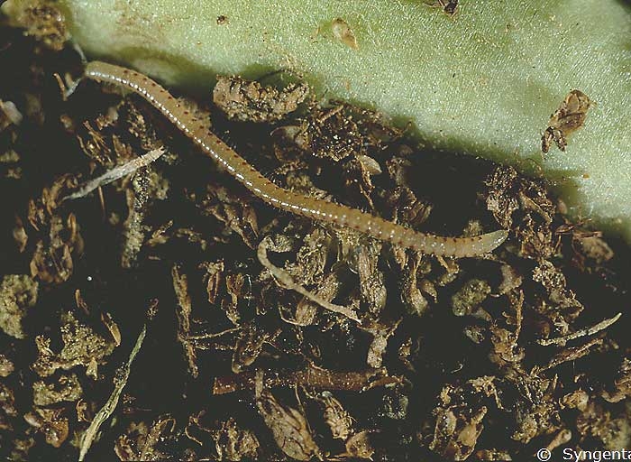 Les blaniules (Blaniulus guttulatus) (millipedes) appartiennent aussi à la classe des Myriapodes mais ont un tégument dur. Ce mille-pattes de 10 à 18 mm de long (figure 1) a un corps mince allongé grisâtre (avec des taches brunâtres sur les côtés) composé de 50 segments semblables (avec 2 paires de pattes par segment), et est souvent enroulé sur lui-même (figure 2).