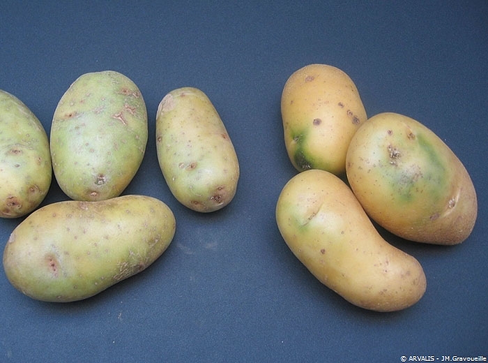 Cette sensibilité décroît progressivement pendant la maturation, mais les tubercules mûrs, fraîchement récoltés, verdissent encore facilement alors qu’après quelques mois de conservation leur sensibilité diminue fortement.