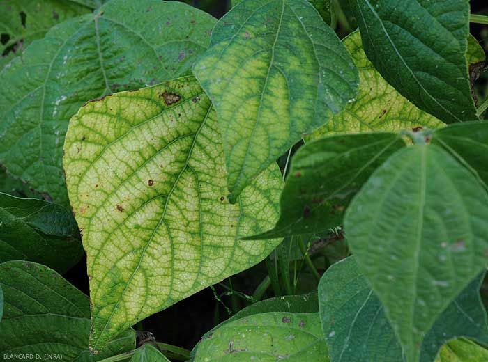 Les feuilles et les folioles attirent bien souvent en premier lieu l'attention du dagnosticien. Ils montrent une grande diversité de symptômes qui peuvent être classés en deux grandes catégories :