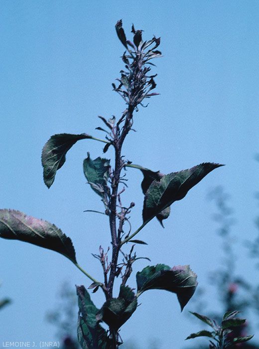 Par ailleurs, les arbres contaminés par le phytoplasme sont plus sensibles à l’oïdium causé par Podosphaera leucotricha.