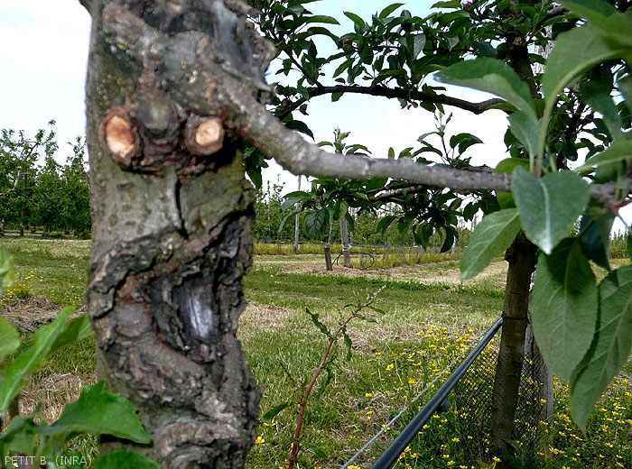 Le chancre peut abriter des ravageurs ou des maladies secondaires (puceron lanigère, sésie, pourritures diverses) qui viennent s’installer à la suite de ces attaques.