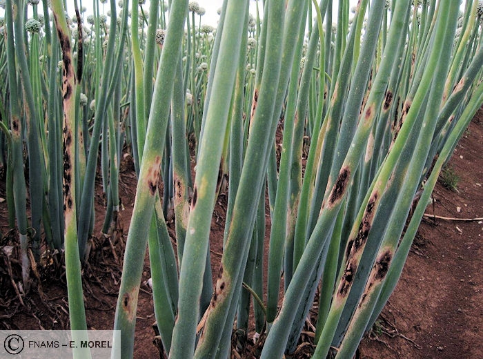 Plusieurs contaminations peuvent avoir lieu au cours du cycle de l’oignon porte-graine. La maladie évolue et aboutit à une épidémie destructrice après 3 – 4 cycles d’attaque consécutifs.