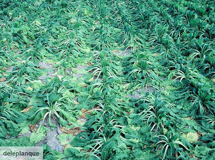 La maladie peut aussi produire des infections latentes sans symptômes apparents. Elle est répartie par foyers dans les champs.